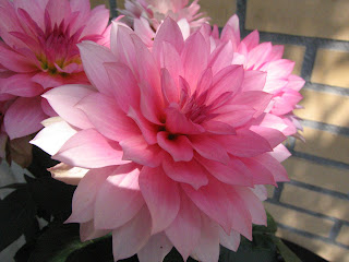 I love dahlias and found these pretty pink ones in the garden center. They have a beautiful yellow tint in the center of the open flower petals.